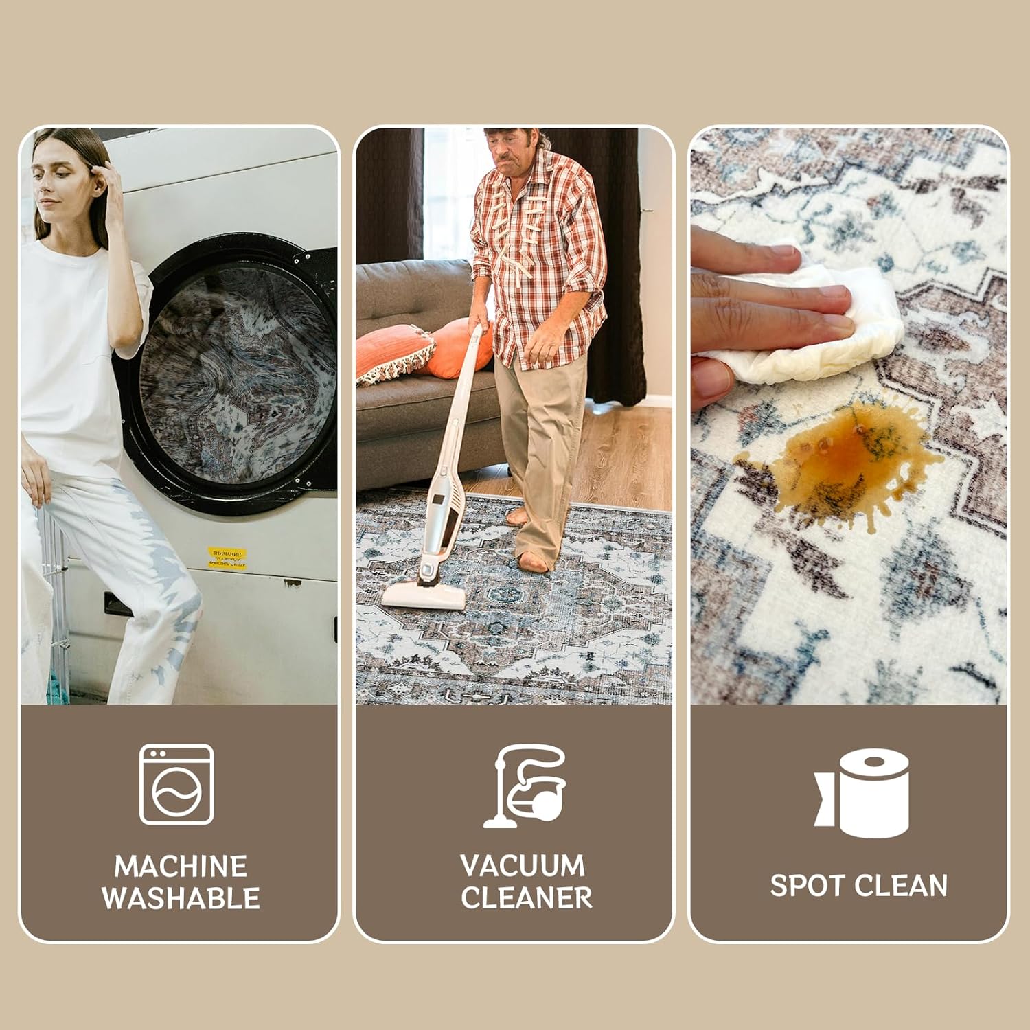 Karpet kain ini terbuat dari bahan serat berkualitas tinggi, dengan tekstur yang lembut dan nyaman, menggabungkan desain pola modern untuk menambah kesan hangat dan gaya pada ruangan. Karpet ini tahan lama dan cocok ditempatkan di ruang tamu, kamar tidur, dan berbagai tempat lainnya, mudah dibersihkan, dan merupakan pilihan ideal untuk meningkatkan selera rumah Anda.